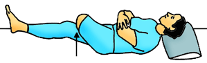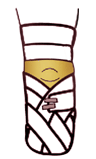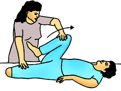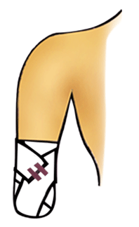 يتــم الربـــط باستـخــدامربـاط ضـاغـط 15 سم و من فوق الركبة بــ 5 سم كما بالشكل و اعادة الربــط كــل 4 سـاعــات |